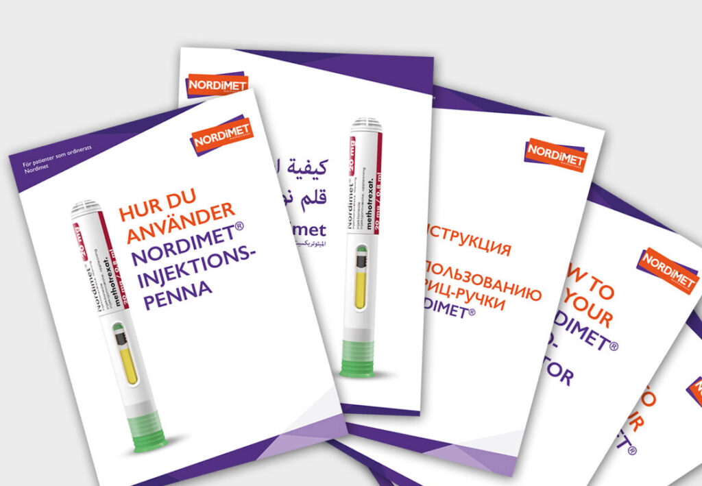 Genom att erbjuda information på flera språk säkerställs att alla patienter kan använda Nordimet på ett tryggt och effektivt sätt. Utöver filmerna kan du beställa Nordimet patientinformationsbroschyrer på hela 10 språk.